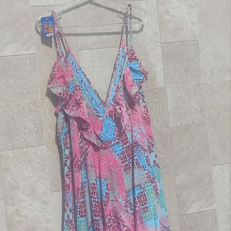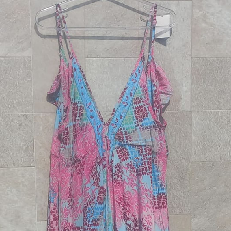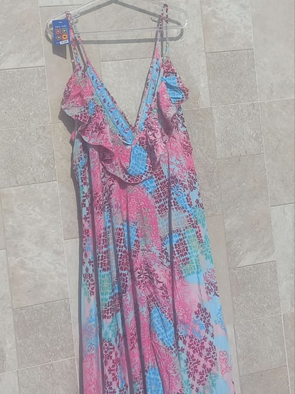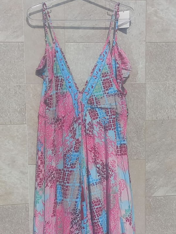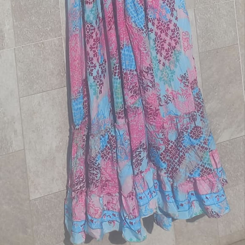 Vestido Longo nas Cores Azul e Rosa, Estilo Boho Chic