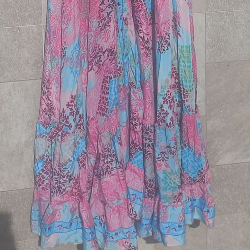 V0003 Vestido Longo nas Cores Azul e Rosa, Seda Indiana, Tamanho Único, Veste 38 até 44, Peso: 347 gramas