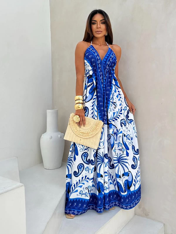 Cor Azul, Vestido Longo estilo Indiano roupa verão luxo, costa nua com Alça Elegante, inspiração Indiana